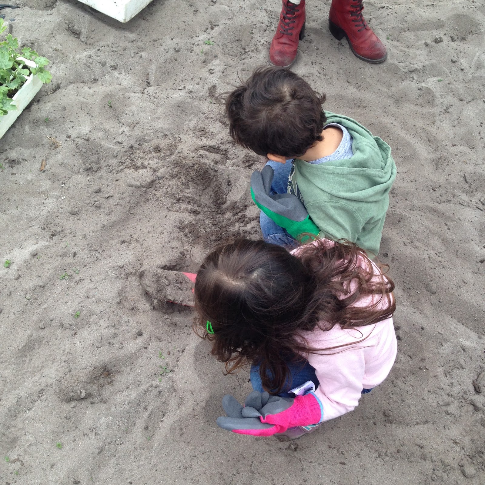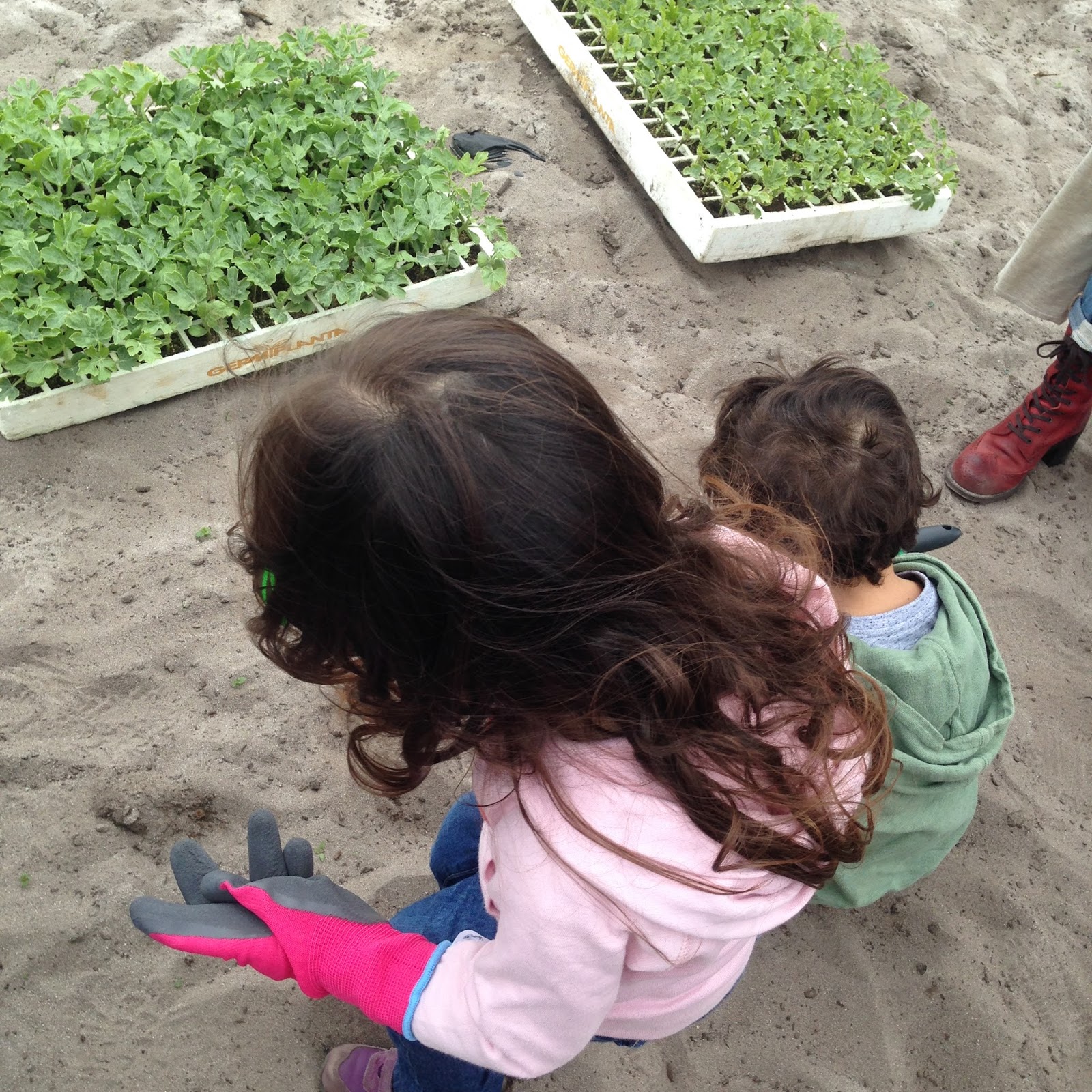 Passaram imenso tempo a brincar, enquanto toda a logística da plantação estava a ser ultimada, e assim que nos chamaram para pegarmos nos utensílios, correram para calçar luvas e pegar em pás e ancinhos!