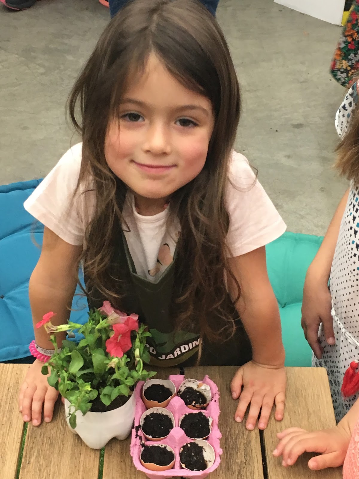 O workshop em si centrou-se em fazer plantações de plantas de jardim utilizando materiais reutilizados. As crianças presentes pintaram um vaso numa garrafa de PET cortada e plantaram uma planta à sua escolha. Seguiram-se as plantações de semente em casca de ovo, e a Carolina escolheu plantar girassóis!